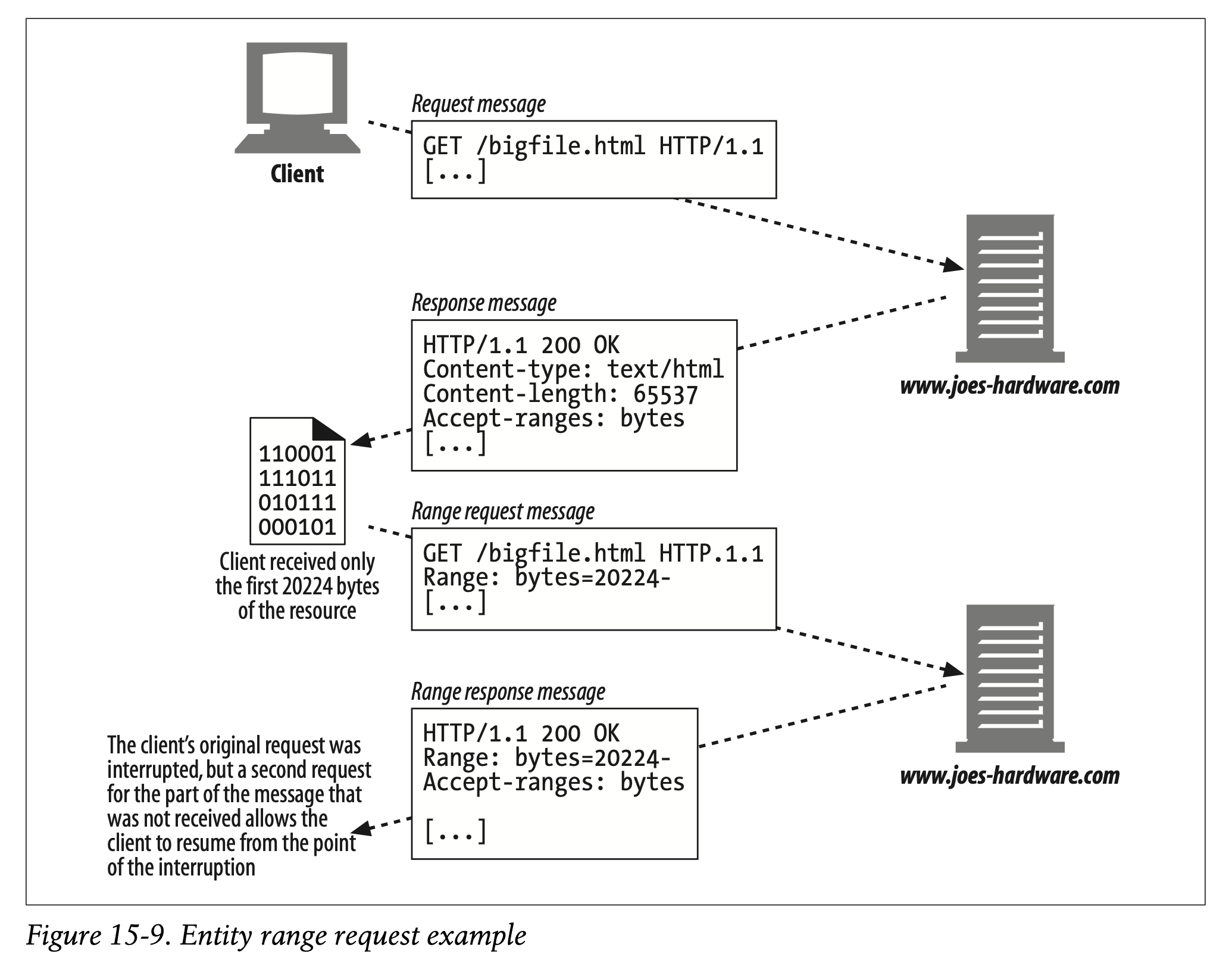 Figure 15-9 shows an example of a set of HTTP transactions involving ranges.
