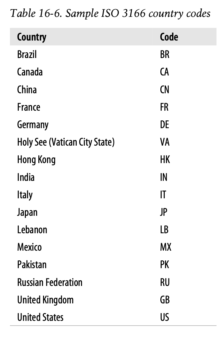 - ISO 3166에서 선택된 표준화된 국가 토큰 사용