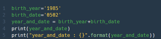 파이썬은 중괄호{} 안에 .format 값을 넣어준다