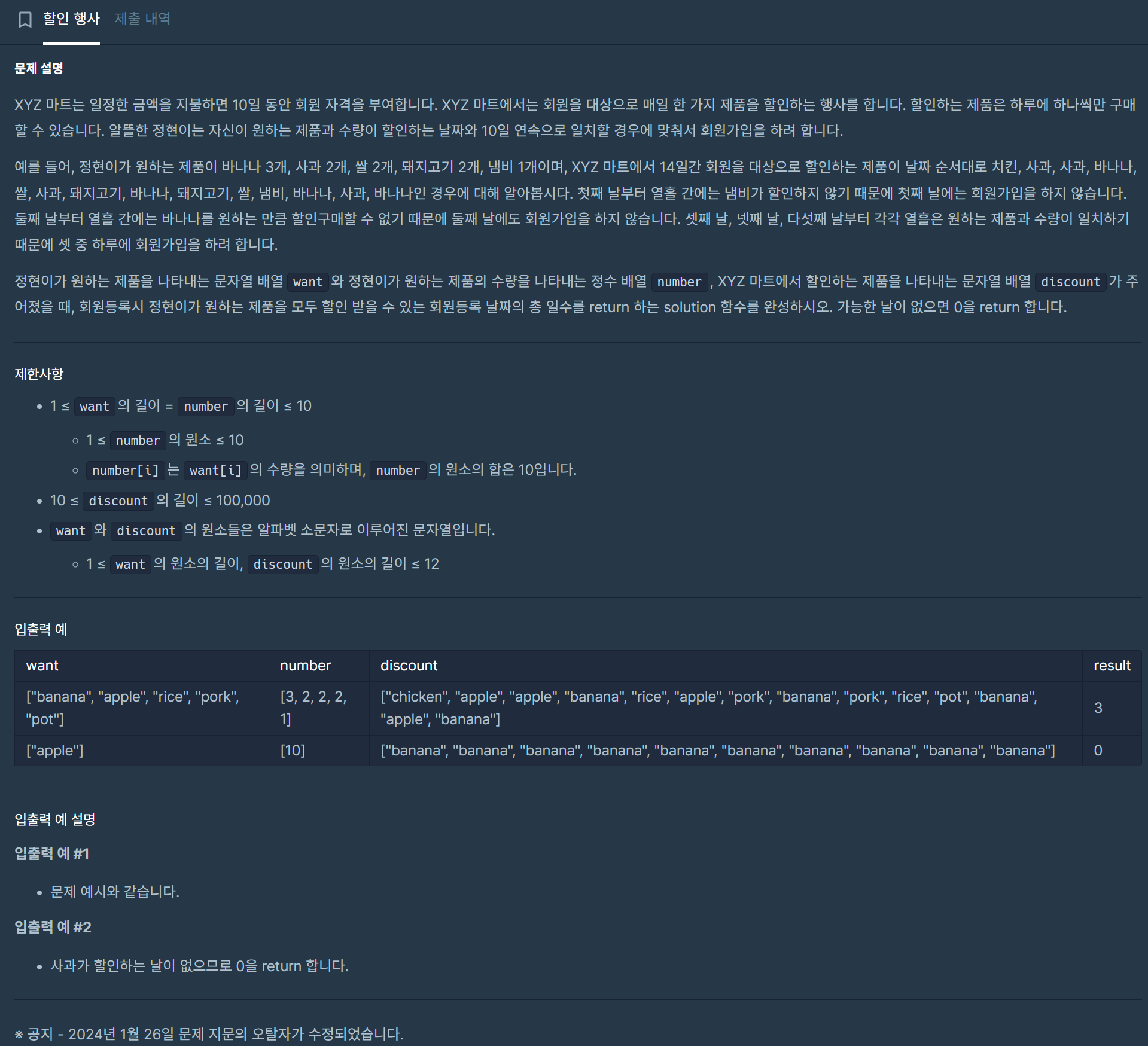 # 정현이는 원하는 제품과 수량이 할인하는 날짜와 10일 연속으로 일치할 경우에 맞춰서 회원가입 할 거임
