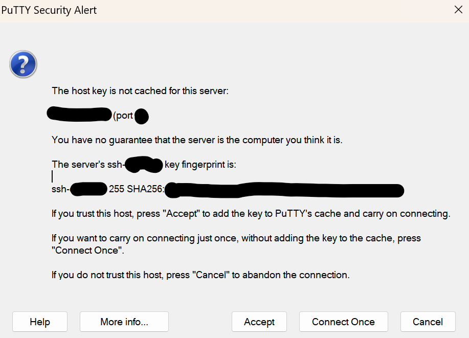 처음 연결할 때는 서버 관리자 또는 신뢰할 수 있는 출처로부터 서버의 SSH 호스트 키 지문을 확인하는 것이 좋습니다. 이를 통해 연결하려는 서버의 정체성을 확인할 수 있습니다.