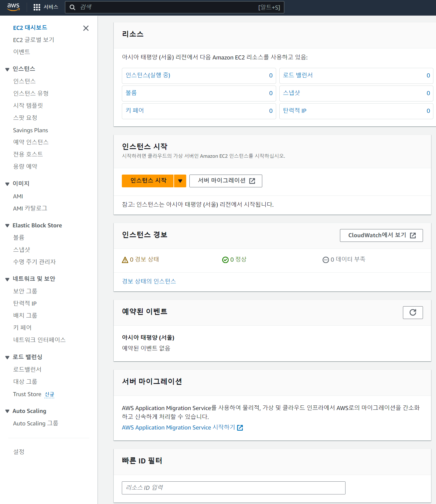 참고: 인스턴스는 아시아 태평양 (서울) 리전에서 시작됩니다.