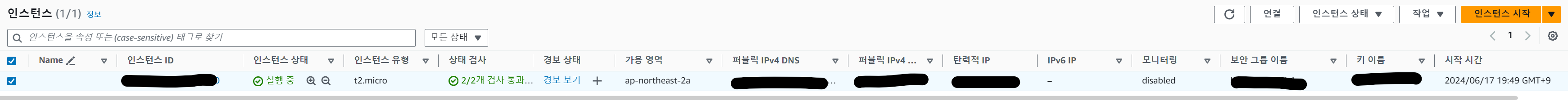 이제 인스턴스 확인 창으로 가서 탄력적 IP가 등록되었는지 확인한다.