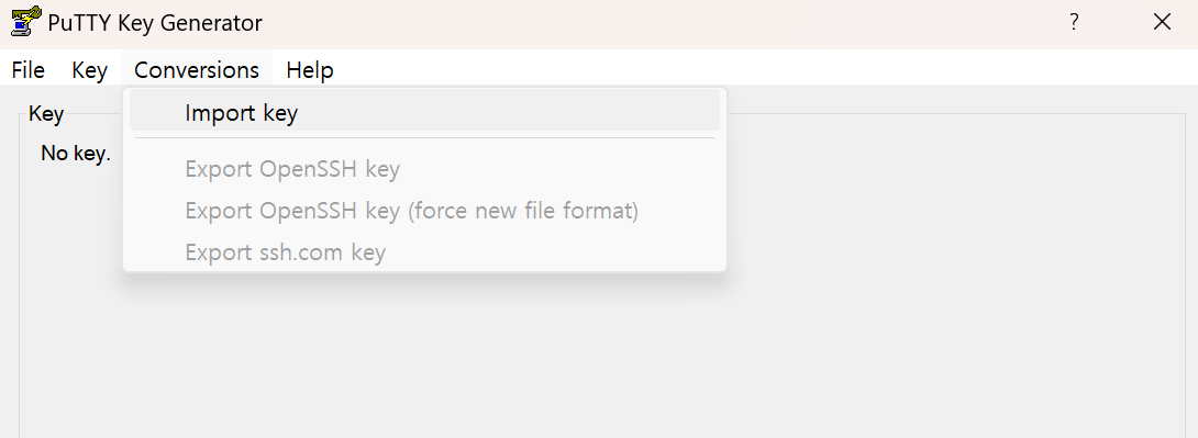 그리고 Save private Key를 눌러주자. 그리고 원하는 이름으로 저장해주면, 원하는이름.ppk가 생성된다.