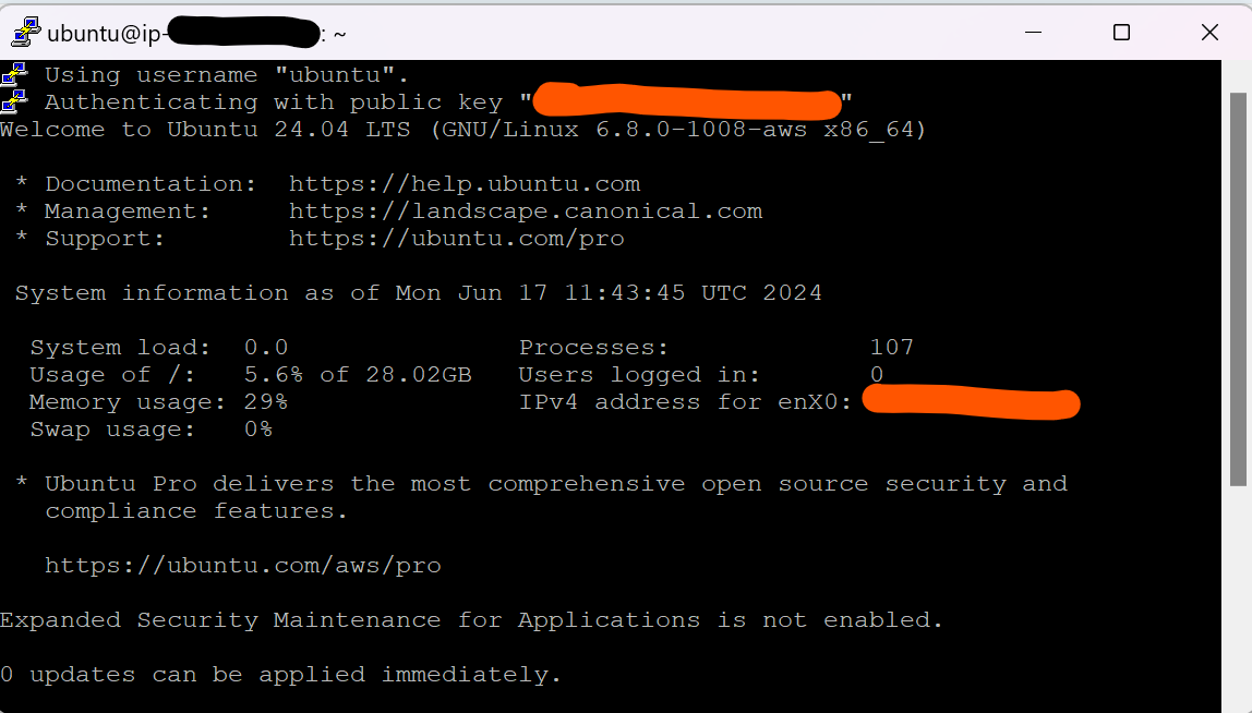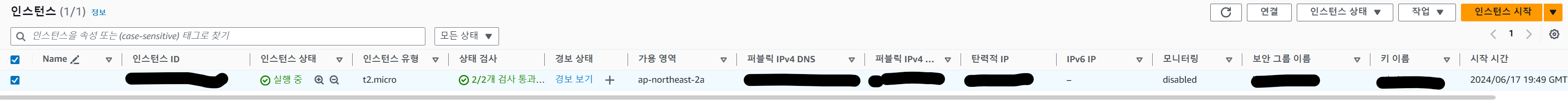음 잘 연결된것으로 보인다. 왜냐하면 밑에 가린게 ec2 주소걸랑.
