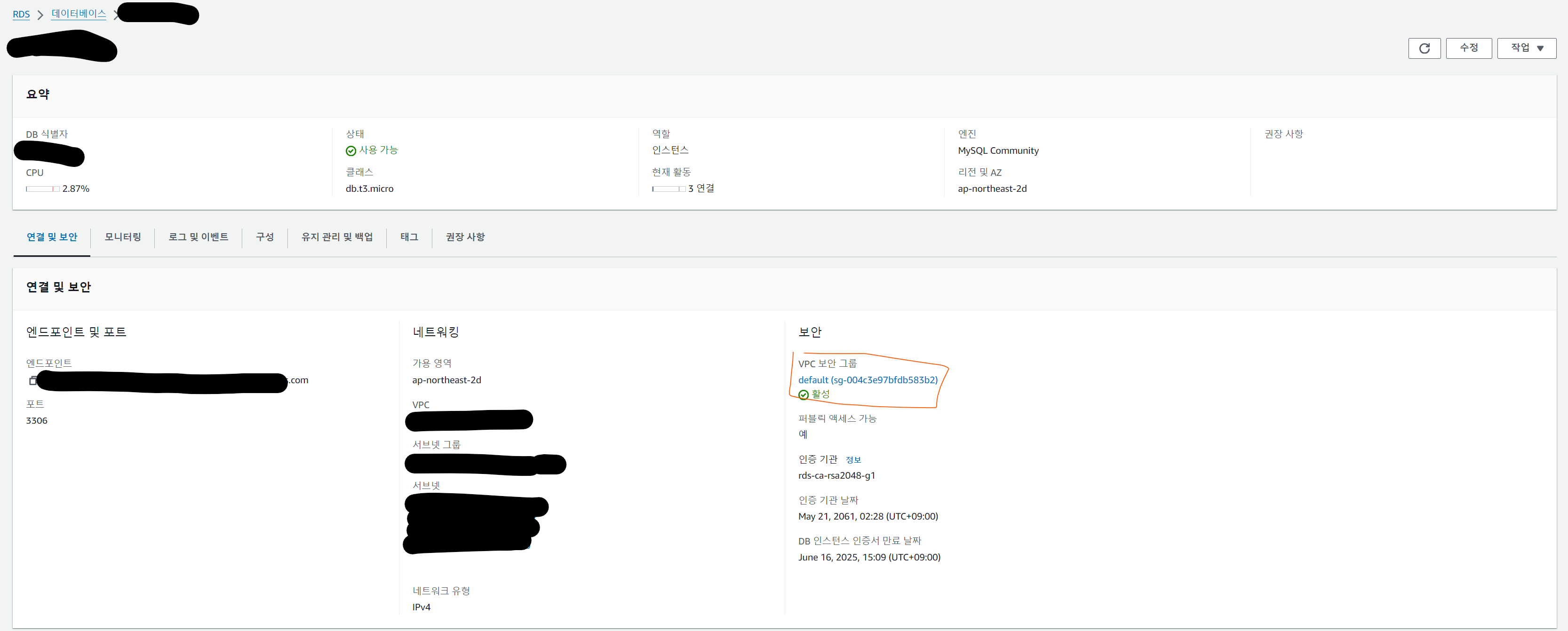 이제 여기서 vpc 보안그룹을 눌러서 들어가보자.