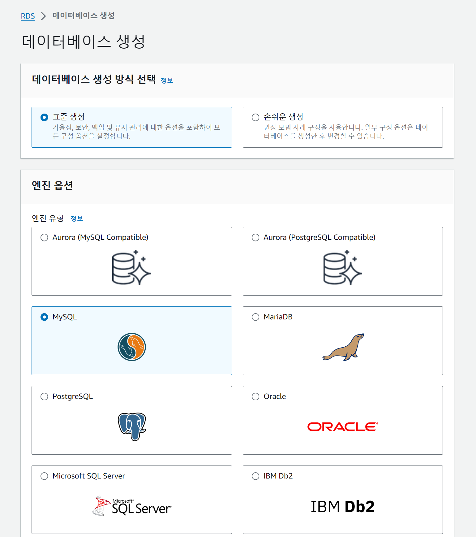 MySQL쓸거니까 MySQL 선택하자.