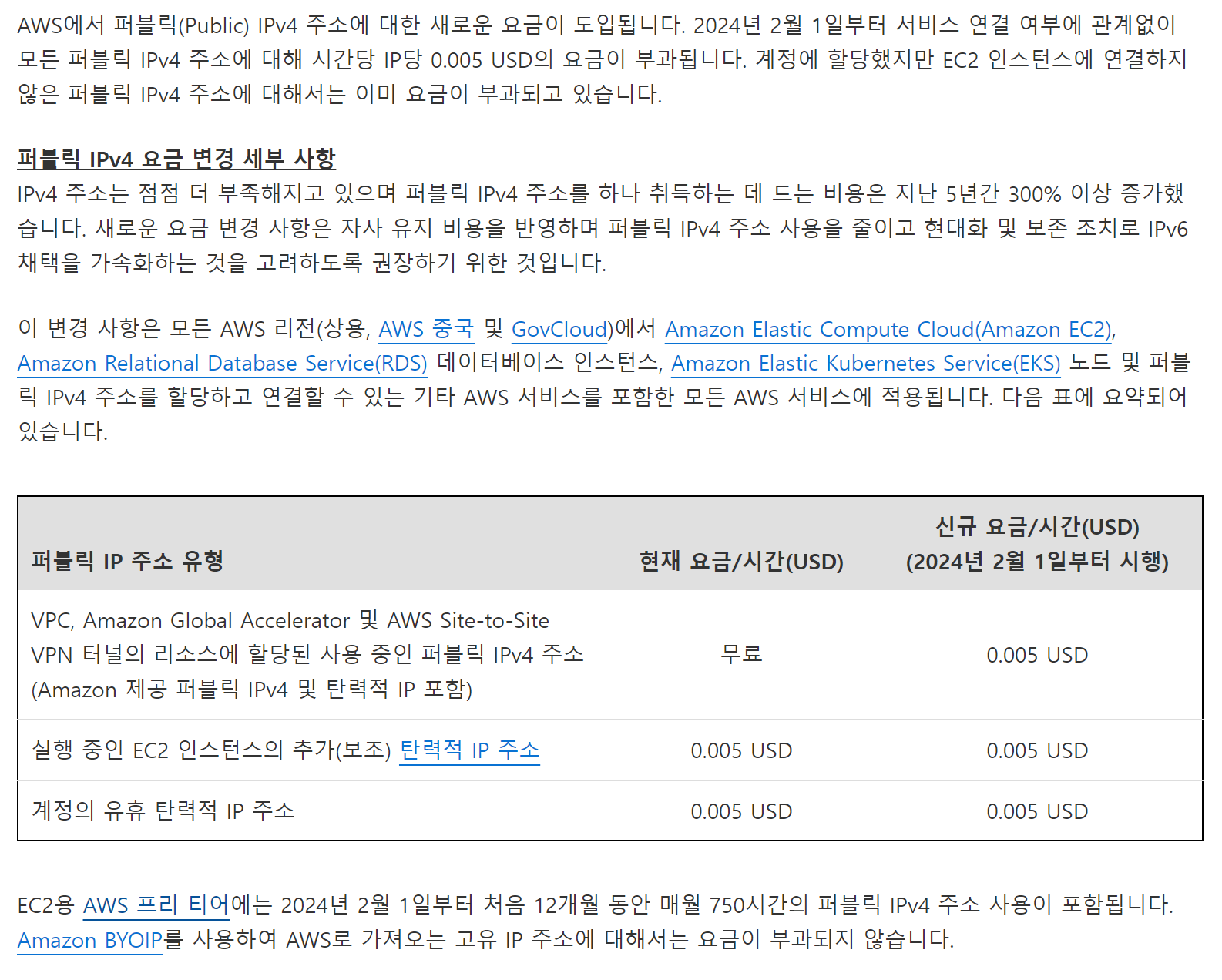 공지 – AWS Public IPv4 주소 요금 변경 및 Public IP Insights 기능 출시