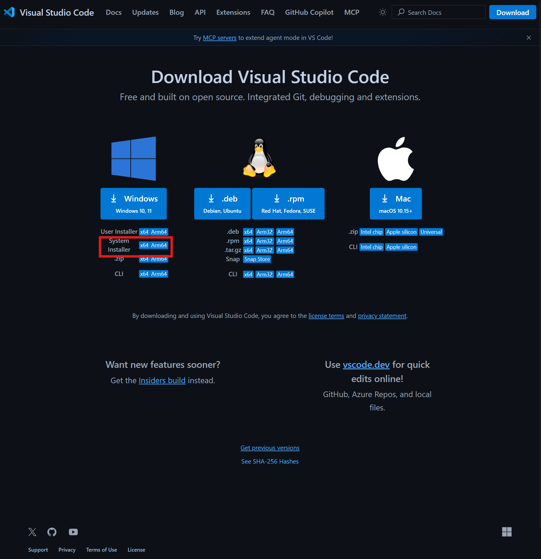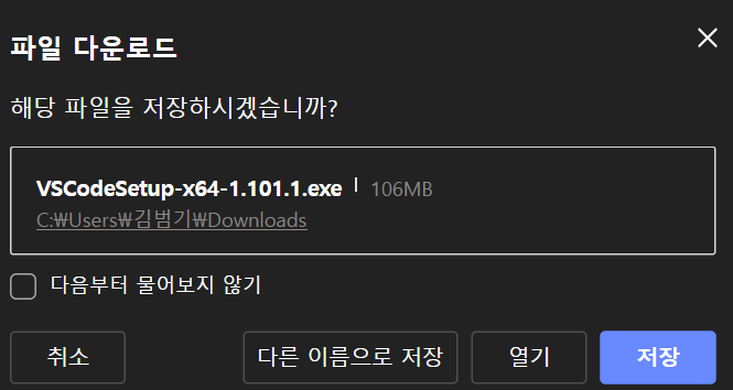 google에 "vscode 설치"를 검색한 후 가장 위에 뜨는 "Download Visual Studio Code - Mac, Linux, Windows" 사이트로 들어가자.