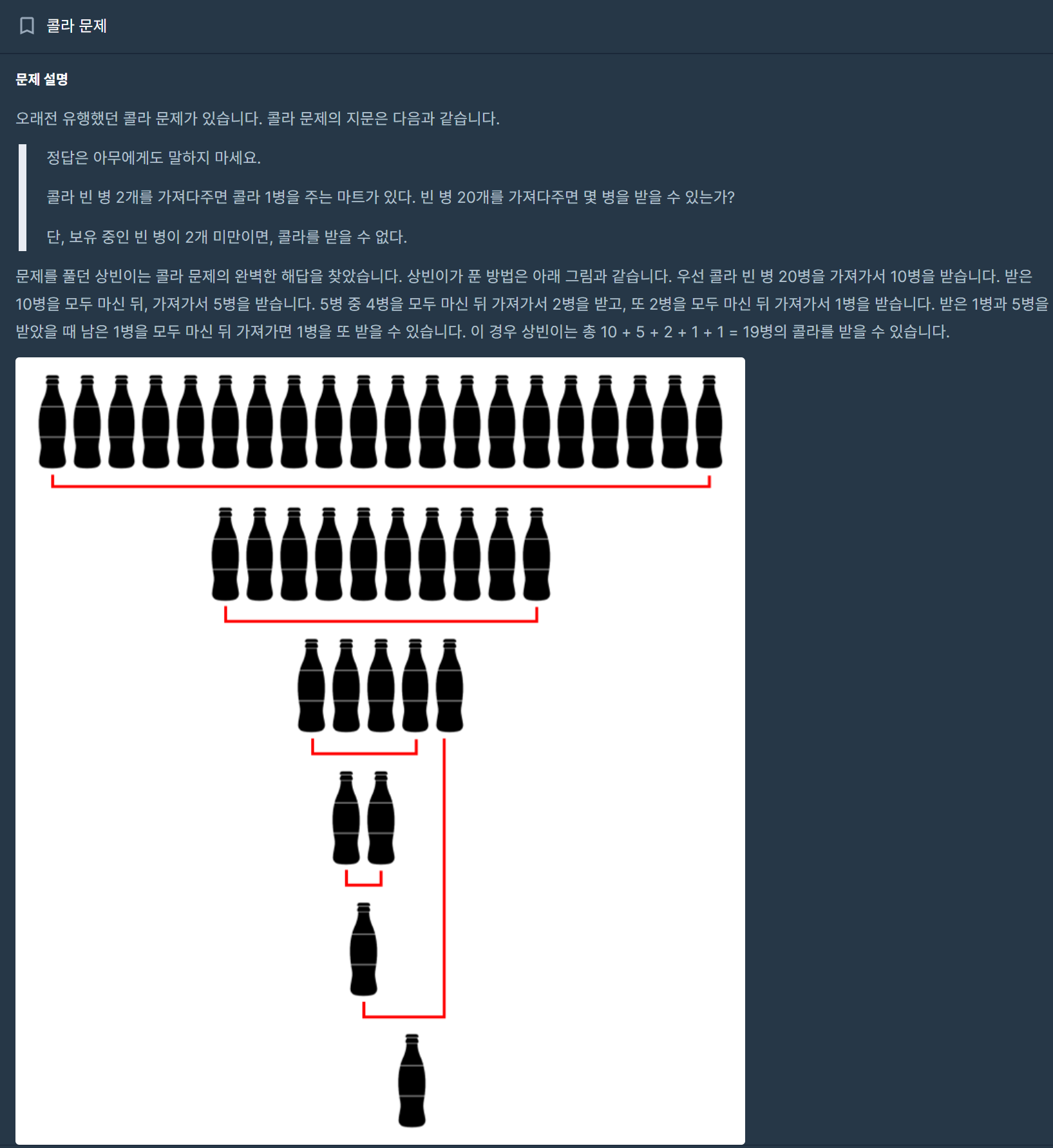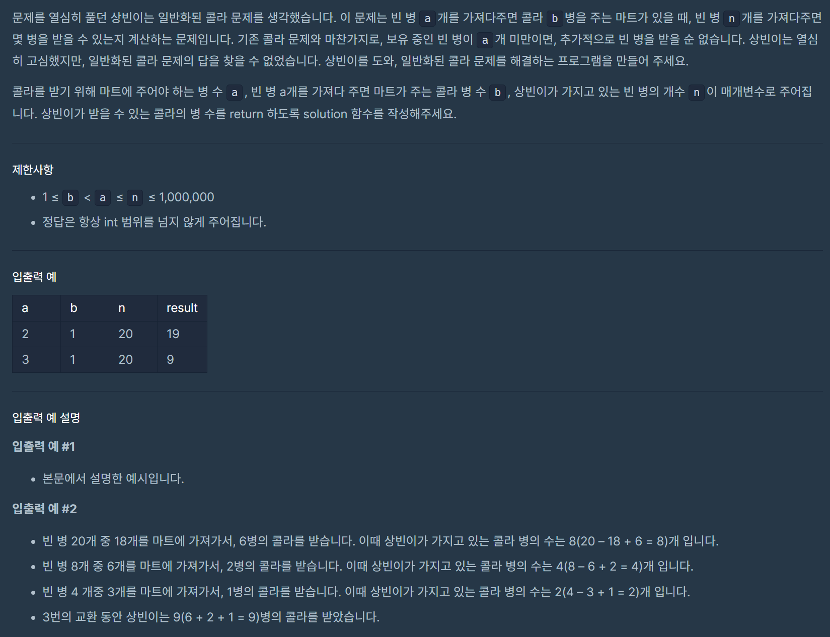 # 문제에서 단, 보유 중인 빈 병이 2개 미만이면, 콜라를 받을 수 없다. 는 잘 해석해야함.