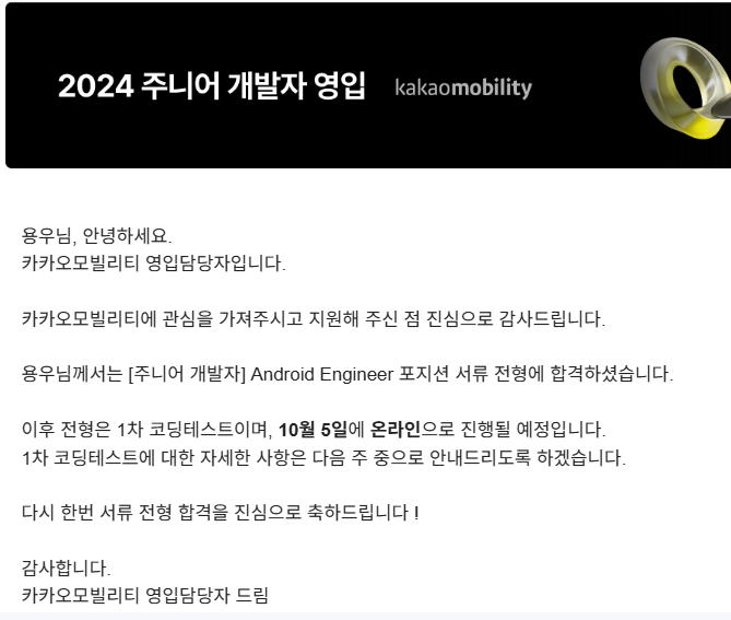 카카오 모빌리티의 서류 합격은 정말 달콤한 소식이 아닐 수 없었다.