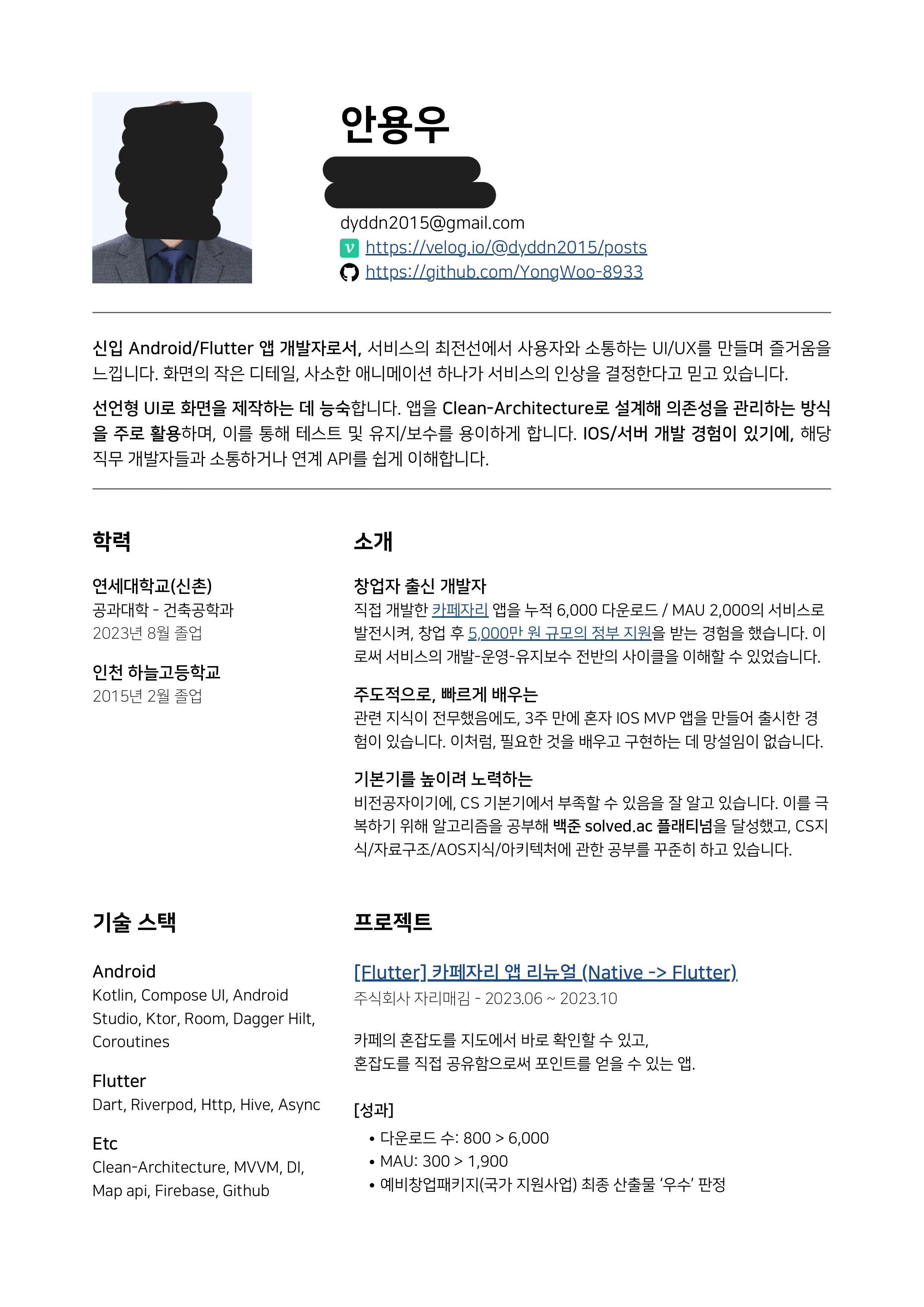 이력서와 포폴에 자기소개 부분이 포함되어있으면