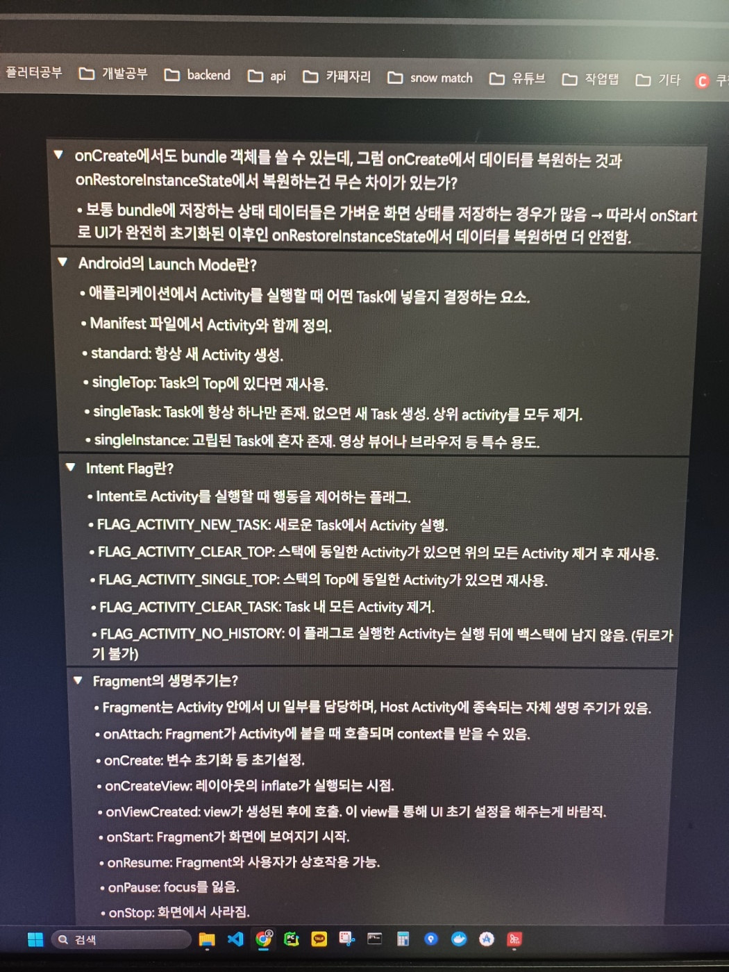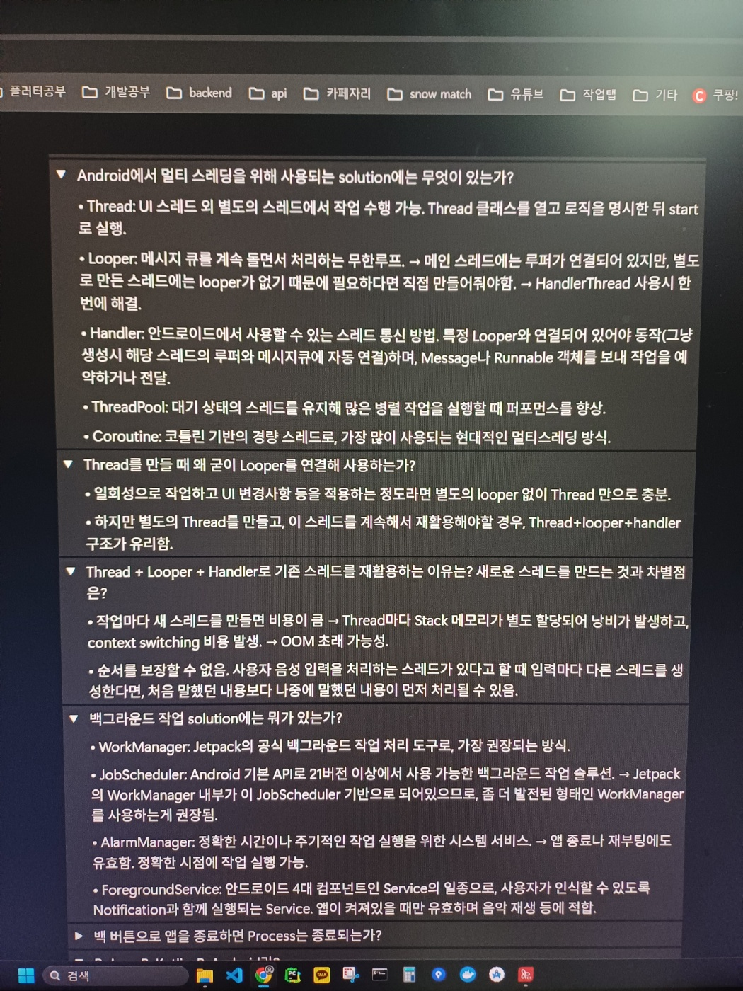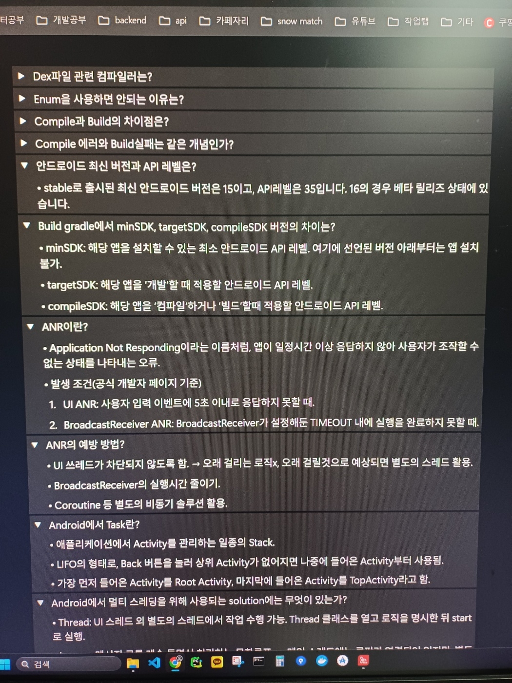 Android 부분 예상 질문만 해도 100개 이상 되었고, 이중 면접때 말했던 개념도 2~3개는 되었다.
