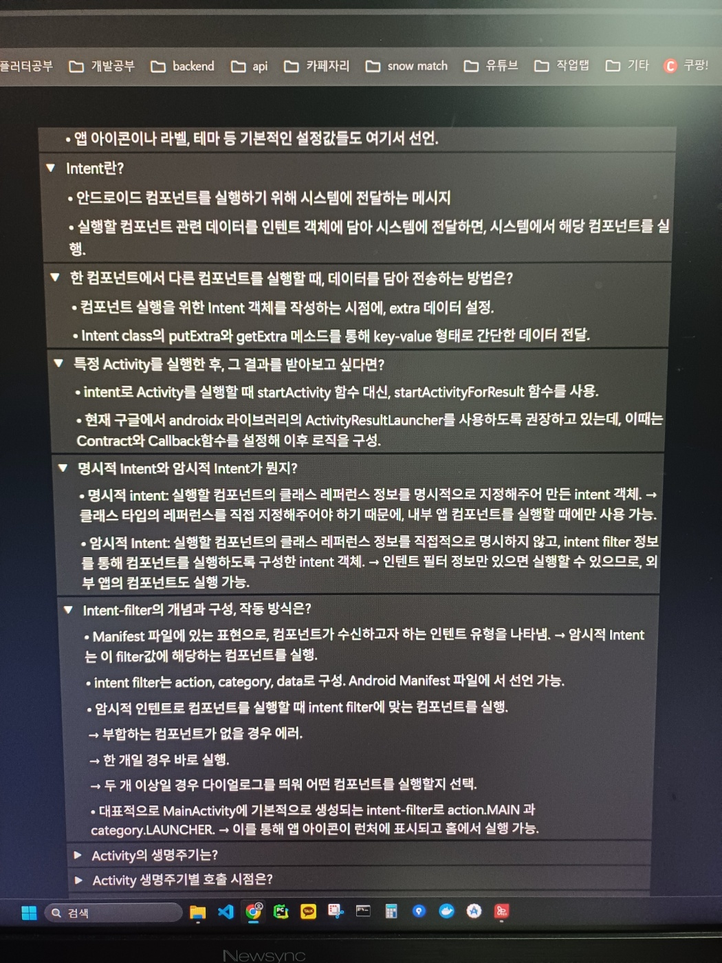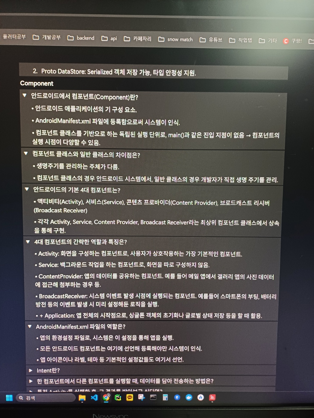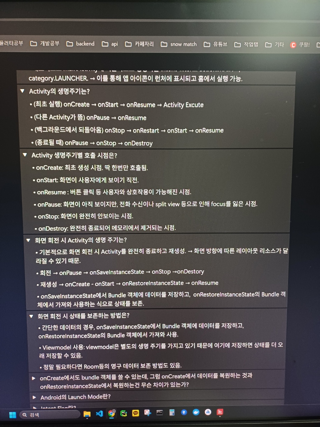 Android 부분 예상 질문만 해도 100개 이상 되었고, 이중 면접때 말했던 개념도 2~3개는 되었다.