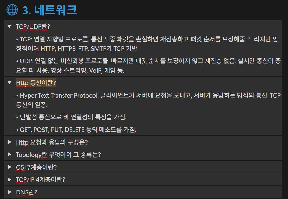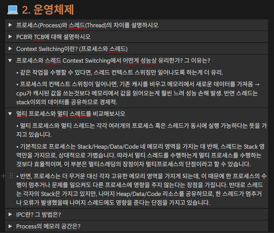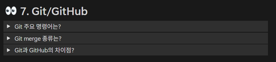 토글 형식으로 만들어두면, 나중에 입에 붙일 때 질문만 보고 대답하는 연습을 하기 좋다.