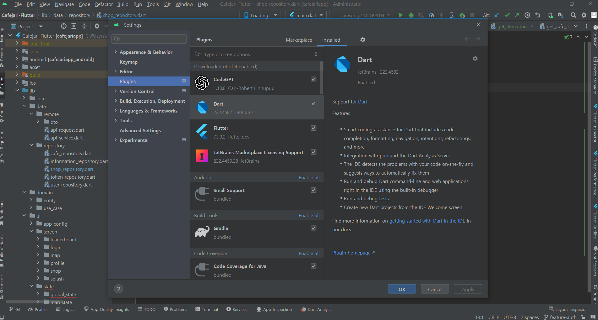 여기서 사용중인 플러터 플러그인이 있다면(안스는 필수다)