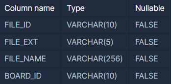각각 파일 ID, 파일 확장자, 파일 이름, 게시글 ID를 의미합니다.