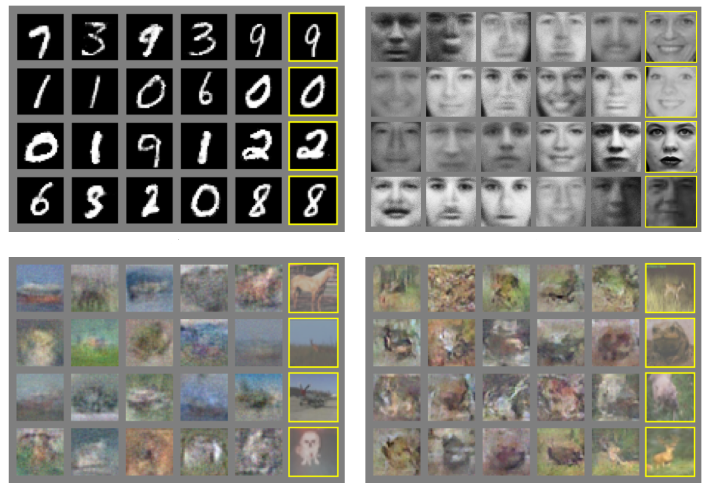 - Feature matching : Adding a least square error term between fake and real data to the loss function.