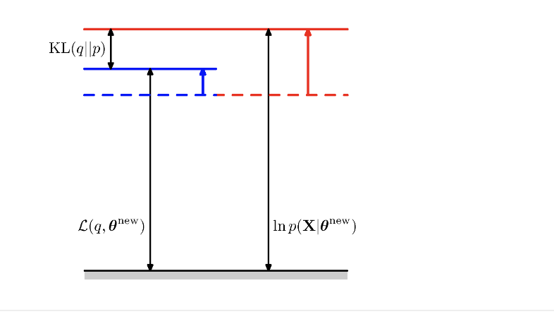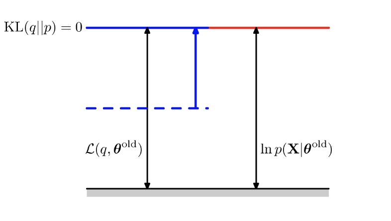 E-step을 진행한 다음의 상태이다. KL을 최소화해서 0을 만들고 L을 최대화한다.