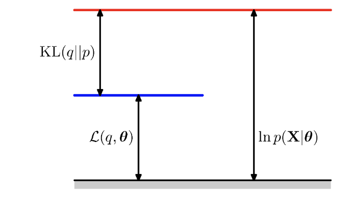 이 주변 가능도 함수를 직접 최대화하는 것은 계산상 어렵다. 따라서 변분 추론(Variational inference)를 사용한다. -> 복잡한 확률 분포를 더 간단한 분포로 근사하는 방법이다.
