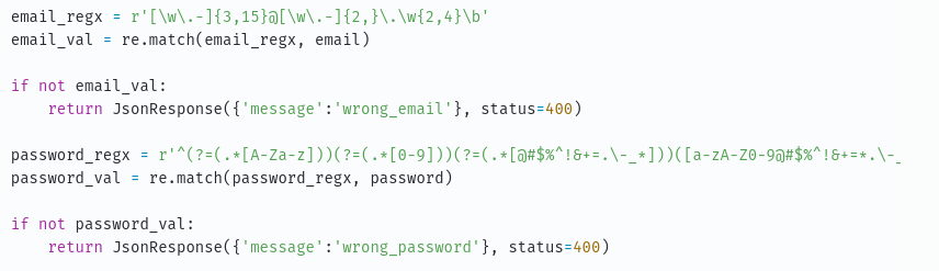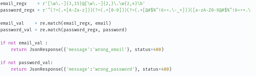 return JsonResponse({'message':'wrong_email'}, status=400)