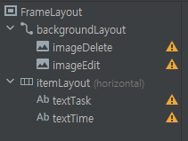 먼저 item의 레이아웃을 FrameLayout으로 만들고 움직일 layout과 배경이 될 layout 두개를 만들어 겹쳐두었다.