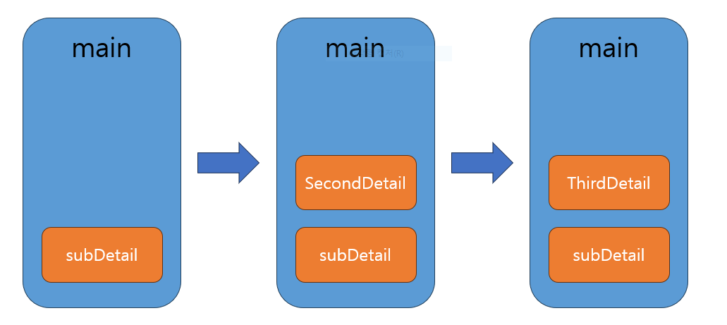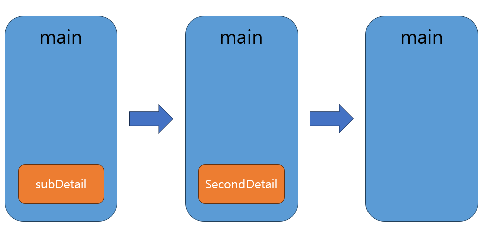 이제 앱을 실행하면 정상적으로 화면이 Sub -> Second -> Third -> Sub로 이동한다.
