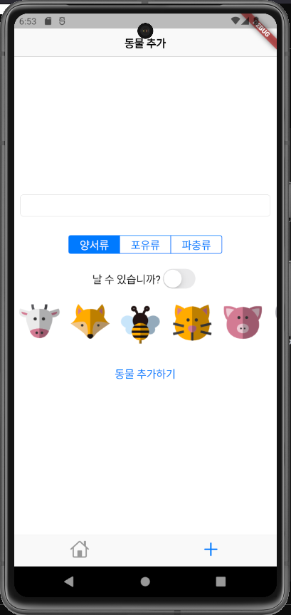 동물의 비행 여부를 입력하기 위한 CupertinoSwitch를 추가했다.