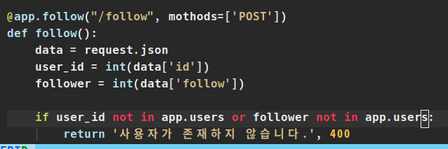 만일 해당 사용자나 팔로우 할 사용자가 존재하지 않는다면 400 bad request를 보낸다.