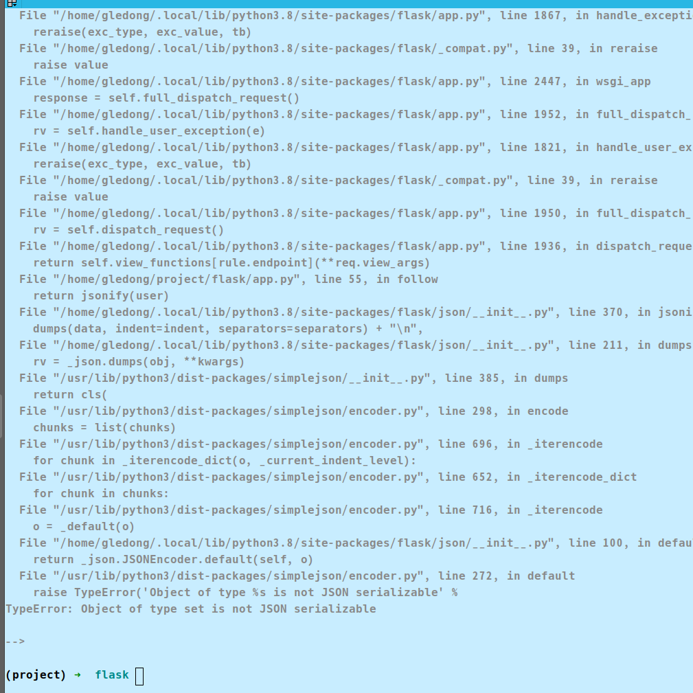 python의 set은 JSON화가 되지 않기 때문에 다른 코드를 추가 해줘야 한다.