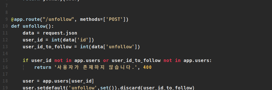 다른 점은 user.setdefault('unfollow', set()).discard(user_id_to_follow)로 변경 됬을 뿐이다.