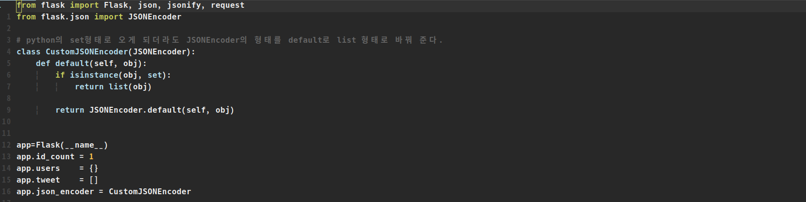 그리고 *app.json.encoder = CustomJSONEncoder를 실행해 줌으로써 app.py에 들어 있는 json data들은 무조건 list로 나오게 된다.