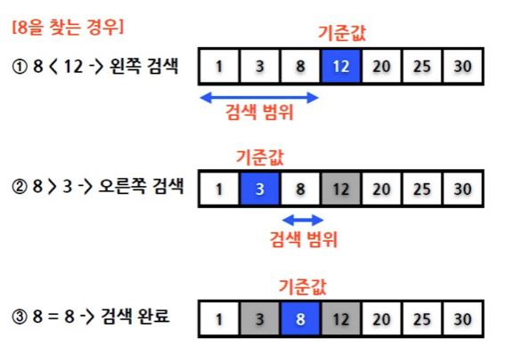 1. 찾고자 하는 값이 8 인 경우 배열의 중값의 값을 기준값으로 정합니다.