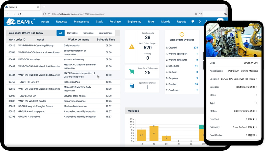 EAMic® eam cmms software is not only an important IT tool for enterprises to manage all equipment assets, but also behind all maintenance data, EAMic® cmms eam system will allow all maintenance personnel to be seen and heard.
