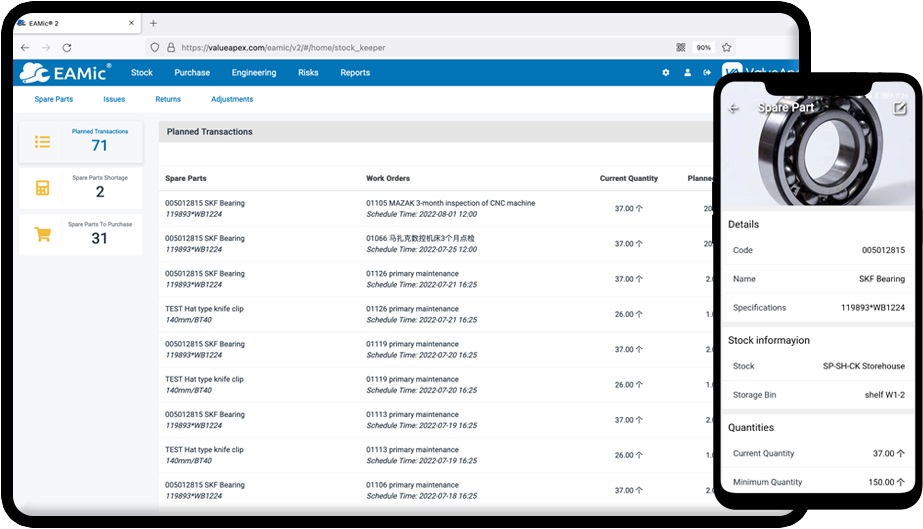 Facilitating the supply of spare parts for key equipment, EAMIc® spare parts inventory management system not only ensures the need for maintenance spare parts for key equipment and the normal operation of key equipment but also reduce unplanned downtime.