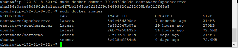 //실행되는 container에 내용을 변경한 후 유지하려면 새로운 image를 만들어서 변경사항 commit해야한다