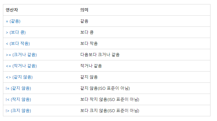 WHERE 절 내에서 특정값 여러개를 선택하는 SQL 연산자