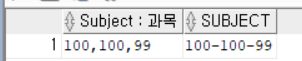 select kor||','||eng||','||math as "Subject : 과목" ,