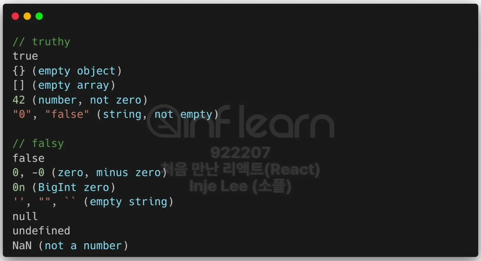 Truthy → True는 아니지만 True로 여겨지는 값Falsy → False는 아니지만 False로 여겨지는 값