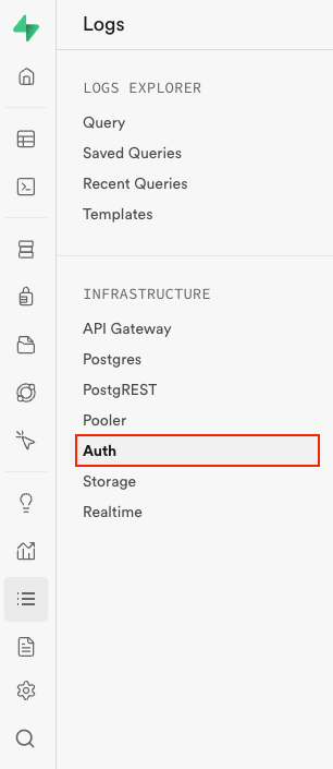 콘솔에 찍힌 에러 메시지로는 정확하게 무슨 에러인지 파악하기가 힘든데 Supabase>Logs>Auth에서 더 자세하게 어떤 에러인지 파악할 수 있었다.