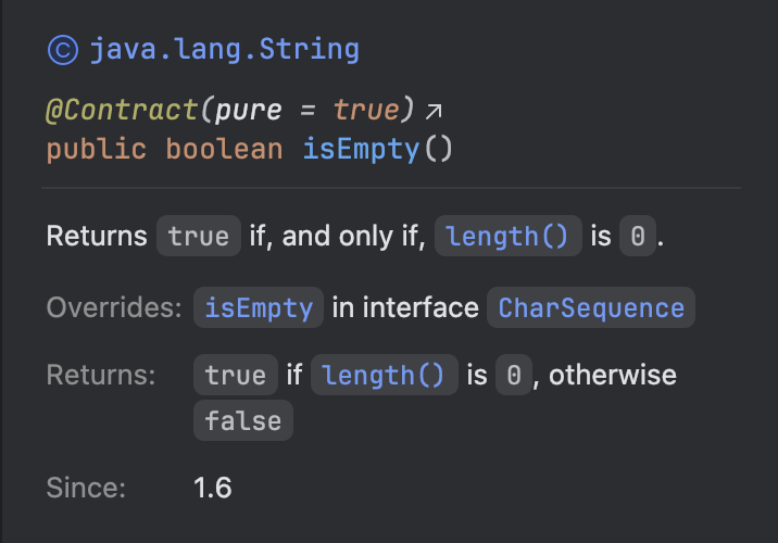 isEmpty()는 길이가 0인 빈 문자열에 대해서만 true를 반환하지만