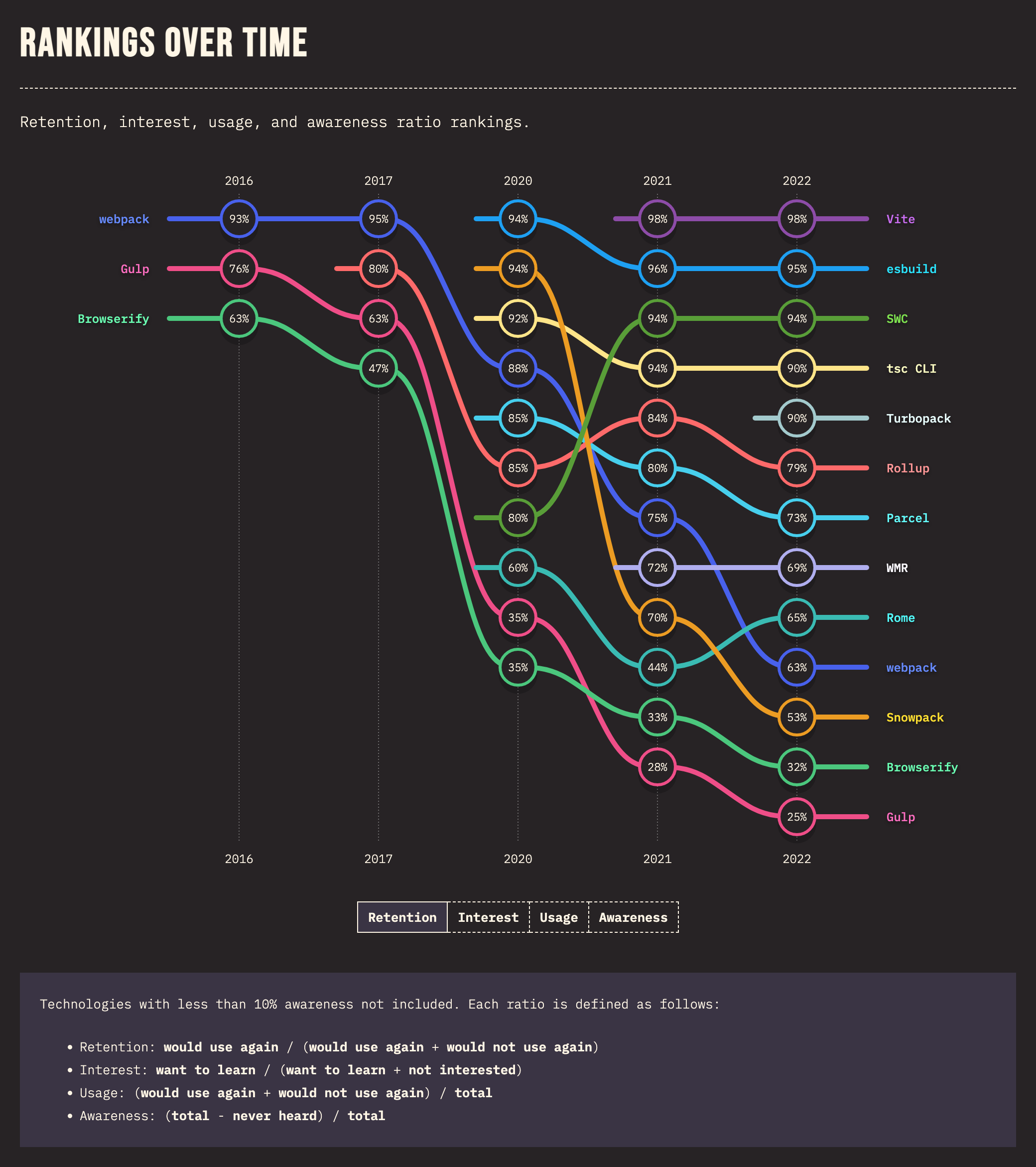 2022 stateofjs 자료를 참고해보면 번들러의 생태계는 다음과 같다.