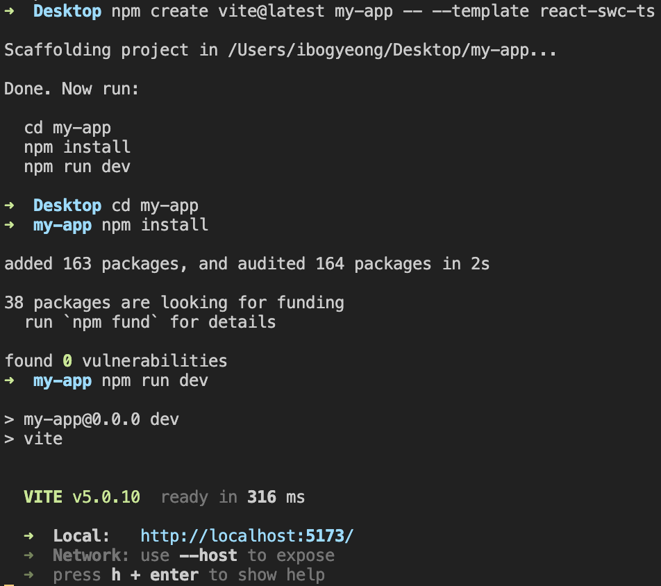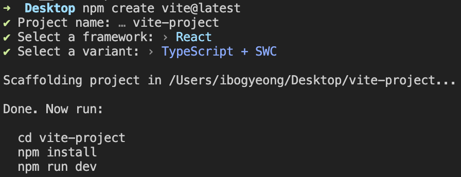 npm create vite@latest [프로젝트명] -- --tamplate react-swc-ts