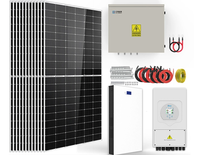 A 10kWh solar power generation system is equipped with 10*550W photovoltaic panels. The average light time generates 22kWh of electricity per day, enough to power an average home. Appliances that can run large homes with 4 bedrooms, including all lights, TV, laptops, refrigerator, washing machine, dryer, central air conditioning.