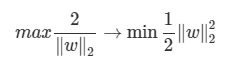 마진을 최대화하는 경계면을 찾는 문제 -> 1) 제곱 2) 역수 3) 최소화하는 문제로