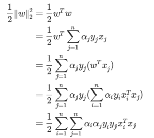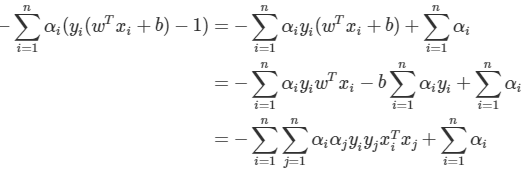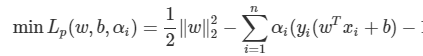 위에서 SVM 문제로 돌아가, 목적식과 제약식을 라그랑지안 문제식으로