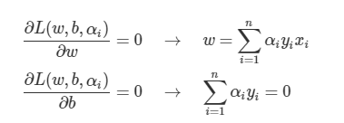 가 0인 조건을 이용해 Plus-plane, minus-plane위에 있는 벡터 즉, 서포트 벡터를 구할 수 있음