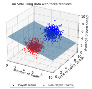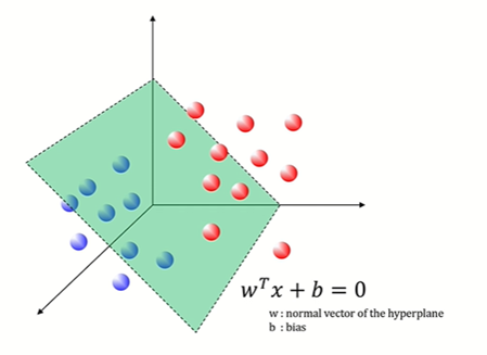 3차원 벡터들간의 결정 경계(데이터의 feature가 3개인 경우) : Decision boundary는 평면