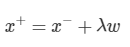 X+와 X-의 관계 : X-를 w방향으로 평행이동시키되, 이동 폭은 λ 로 스케일