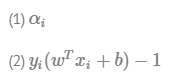 1)의 경우 알파i가 0인 관측치들은 decision boundary 형성에 영향을 미치지 못함. 즉, 마진 결정에 필요없음!